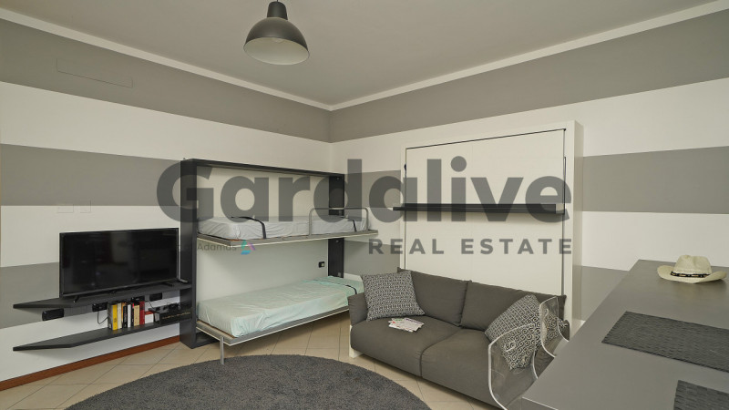 PUEGNAGO DEL GARDA - Nella zona di Puegnago, comodissimo a passeggiate e ciclabili con splendide viste panoramiche, comodo a ristoranti, agriturismi ed aziende agricole, ed allo stesso tempo anche al centro con il municipio, poste, fruttivendolo, macelleria, vicinissimo ai conosciuti laghetti di Sovenigo ed a soli 3 km dal lago, proponiamo in vendita in splendido contesto di pregio con piscina con vista panoramica sul lago, appartamento loft monolocale al piano terra. Il loft è stato studiato in ogni particolare e dettaglio con mobili a letto che si nascondono facilmente cosi da dare all'ambiente una forma di zona living quando serve e di zona notte quando occorre, cucina a vista e tavolo pratico con penisola, e bagno con doccia con antibagno con spazio per lavatrice e asciugatrice. Completa l'appartamento un'ampia porta finestra che accede al giardino privato con scorci di vista lago. L'immobile gode anche di un posto auto privato coperto nell'interrato. Ideale come seconda casa per chi non desidera nulla di troppo impegnativo ed allo stesso tempo avere un punto di appoggio sul lago, o come investimento da mettere a reddito, ideale anche come prima casa data la sua comodità al pian terreno con posto macchina coperto. --- annuncio pubblicato con GESTIONALEIMMOBILIARE.it