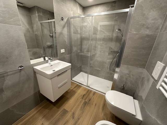 In palazzina di nuova realizzazione, posta in zona riservata e adiacente al confine Svizzero. Bilocale di 50 mq nuovo e completamente arredato. Soggiorno con cucina a vista, camera da letto e bagno. Terrazzo ad uso a cui si accede dalla camera da letto. Posto auto e cantina di proprietà. Ampia disponibilità di bilocali e di monolocali nel complesso con metrature e prezzi variabili, alcuni liberi e disponibili da subito, altri affittati con contratto regolare. Ottima opportunità di investimento. CLASSE ENERGETICA: 30,86 kWh/m3 a