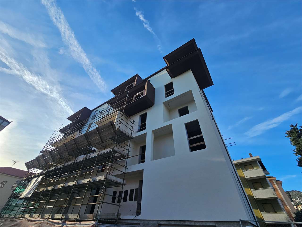 Diano Marina in via Villebone n. 5 nella residenza denominata Marinella : a pochissimi passi dal mare e dall'isola pedonale, in zona residenziale che ti permette di vivere in uno spazio incontaminato dal caos cittadino proponiamo in vendita IN ESCLUSIVA ATTICO E SUPERATTICO DI NUOVA COSTRUZIONE CON FAVOLOSA VISTA MARE COMPLETO DI POSTO AUTO IN CLASSE ENERGETICA A3. La Residenza Marinella nasce come un affascinante edificio residenziale composto di 8 unità immobiliari realizzato sfruttando le ultime tecnologie costruttive raggiungendo i migliori standard sia dal punto di vista energetico/acustico sia da quello ambientale, con materiali e finiture di altissimo livello qualitativo, ottenendo così la CLASSE ENERGETICA A3, nel rispetto delle più recenti norme antisismiche. La soluzione oggetto di compravendita è sita al piano quarto ed ultimo con ascensore e la disposizione interna è la seguente: ingresso, soggiorno con cucina a vista, disimpegno, camera matrimoniale, cameretta, antibagno e doppi servizi. Completano l'immobile: - un terrazzo angolare rivestito con piastrella in gres porcellanato per esterni e parapetti in vetro che permetteranno di godere a pieno della vista sul mare. - TERRAZZO SOLARIUM SOVRASTANTE di 46 mq circa con accesso dal vano disimpegno all'interno dell'immobile con favolosa vista mare e golfo dianese. Ad impreziosire la proprietà un posto auto privato incluso nel prezzo. Il riscaldamento sarà autonomo tramite innovativo impianto di climatizzazione invernale ed estivo con proprio contatore elettrico. Gli infissi in doppio vetro in alluminio sono della" KORUS", serramento termico di design di nuova progettazione che garantisce una trasmittanza termica/acustico completo di sistema oscurante. La facciata viene rivestita con lastre ceramiche Laminam e rappresenta una soluzione perfetta tra resa estetica e prestazioni tecniche. Questi materiali sono stati sviluppati con l'obiettivo di fornire una soluzione innovativa per rivestire edifici residenziali, commerciali e industriali, garantendo durabilità, resistenza agli agenti atmosferici, facilità di manutenzione e un'estetica moderna e sofisticata mantenendo inalterate i colori nel tempo. Doppia e luminosa esposizione, vani ampi dal taglio regolare e ben sfruttabili. Soluzione Unica, ne consigliamo vivamente la visione. POSSIBILITA' SCELTA CAPITOLATO. Consegna prevista Marzo 2026. Per informazioni Divina Servizi Immobiliari 0183-493175 o 329-1448986 e-mail: dianomarina@immobiliaredivina.it. Altre interessanti proposte su www.immobiliaredivina.it - La presente scheda non costituisce forma di contratto, le informazioni qui contenute sono da ritenersi del tutto indicative e non potranno essere utilizzate come parte integrante in un eventuale contratto di vendita o locazione della proprietà. La presente non vincola in alcun modo la società. CLASSE ENERGETICA: