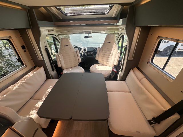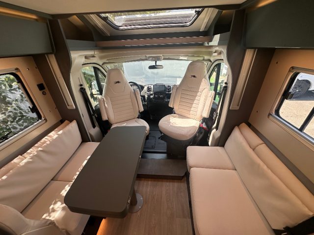 PACCHETTO ONE Fodere cabina coordinate con il soggiorno Cupolino con skyview integrato apribile Letto basculante elettrico sopra la dinette Cappa aspirante in cucina Predisposizione retrocamera Serbatoio di recupero riscaldato Oscuranti interni plissettati in cabina per parabrezza e cristalli laterali Predisposizione pannello solare Pedana in legno per la doccia Moquette cabina guida Porta cellula Premium XL con chiusura centralizzata con telecomando Pareti camera da letto posteriore rivestite in Ecopelle Cestelli e portabottiglie estraibili in cucina Tappezzeria Firenze in Eco-Pelle Cuscini Firenze in Eco-Pelle IN AGGIUNTA COMPRESI NEL PREZZO: Freno a mano elettrico Multimedia retrocamera + radio Letto posteriore elettrico Vernice Cabina Fiat Metallizzata veranda.